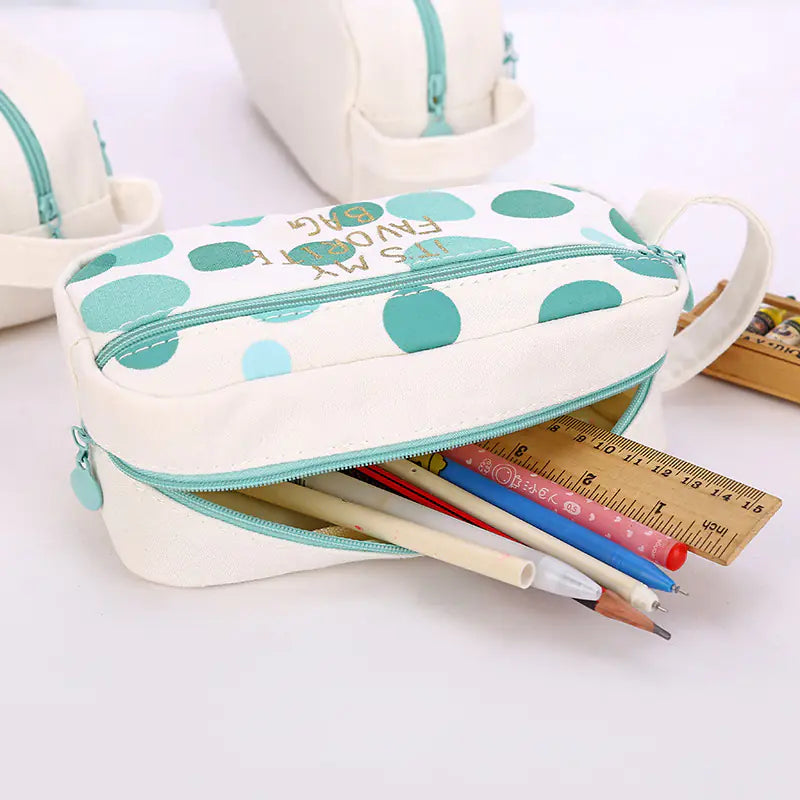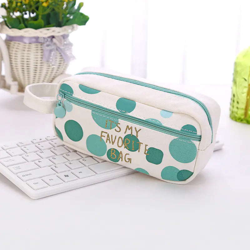 Keep school supplies neat and tidy with our Canvas Pencil Case! Made from strong, easy-to-clean canvas, this zippered case is both practical and playful. Kids will love the cheerful cartoon patterns and colorful designs (Diamond, Dot, Stripes, Big Dot), while parents will appreciate the quality and durability. With plenty of room inside, it’s the perfect everyday essential for school or home.